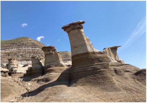 世界三大恐竜博物館の一つ、ロイヤルティレル博物館で恐竜の化石をみたり、隆起した土地の地層や、エリンギのような形をした岩などを見ました