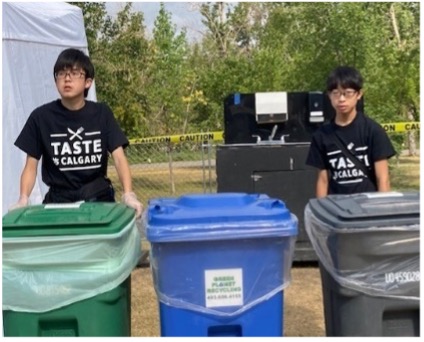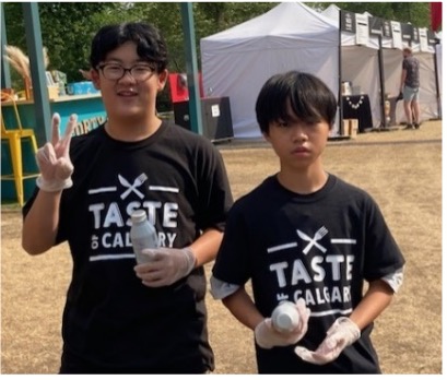 夏祭りの会場で出るゴミの仕分けをおこないました。カナダは可燃ごみ、不燃ごみ、リサイクルゴミに加えて、紙製・木製・生ゴミなど土に返るゴミまで分別しています。大学入試などにも有効なボランティア認定証も発行してもらいました。