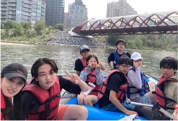 カルガリーの北部に流れるボー川を3時間ぐらいかけて川下りしました。水はとても冷たかったのですが、みんな飛び込んで楽しそうでした。ボートの上でランチやおやつを食べたりしました。
