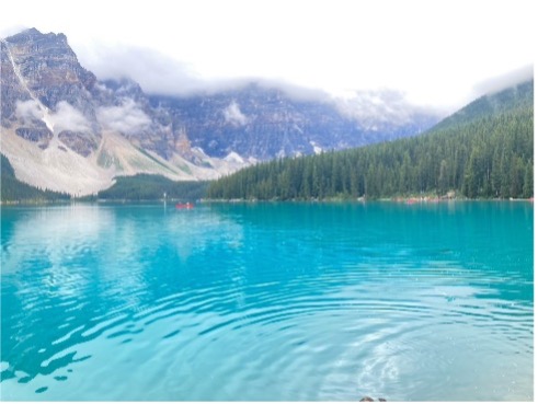 バンフ国立公園まで行きました。途中、レイクルイーズやモーンレイクに寄り、水の青さに感動しました。バンフではビーバーテイル(ビーバーのしっぽの形をしている)と呼ばれる揚げパンのようなお菓子を食べ、美味しさに感動していました。(カナダでは有名なスイーツです)