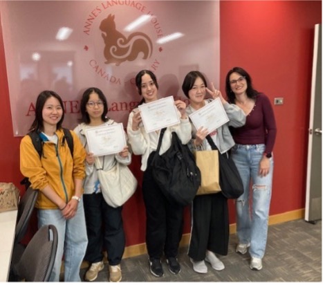 学校では他の国からきた生徒さんもたくさんいましたし、授業では文法の勉強はもちろん、プレゼンをして、活きた英語をたくさん使う場面がありました。(終了証をもらいました)